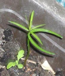 Keywords: Taxus baccata seedling.jpg Taxus baccata seedling a few weeks old ein wenige Wochen alter Keimling einer Europäischen Eibe Own 2007-08-08 IEDAFHBG Pinales seedlings Taxus baccata