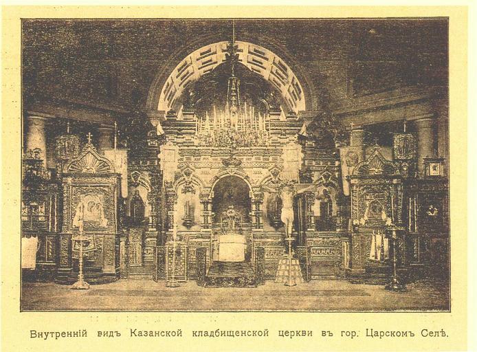 | Keywords: Tcarskoe Selo 1900-e 017.jpg Ца ское Село Внут енний вид казанской кладбищенской це кви Tsarskoye Selo Russia ru Из коллекции Ю ещанинова en From M J Meshchaninova's collection 1900 Historical images of Tsarskoe Selo Kazan icon of Our Lady church in Tsarskoye Selo PD-old |