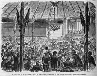 | Keywords: Té literario en el «Prado Catalán» de Barcelona, en obsequio de los poetas invitados a los Juegos Florales, de Tomás Padró.jpg El Museo Universal 1868 6 6 El Museo Universal Té literario en el «Prado Catalán» de Barcelona en obsequio de los poetas invitados a los Juegos Florales 12 23 180 http //prensahistorica mcu es/es/catalogo_imagenes/grupo cmd interno S posicion 4 path 7147887 presentacion pagina date 1868 6 6 1889-8440 Dibujo Creator Tomás Padró Grabado http //bvpb mcu es/es/consulta_aut/registro cmd control BVPB20080098728 Celestino Sadurní Deop 1830-1896 PD-Scan PD-old-auto-1923 1896 El Museo Universal Tomàs Padró Celestino Sadurní Barcelona in art 1868 in Catalonia Teatre del Prado Catalán Passeig de Gràcia |