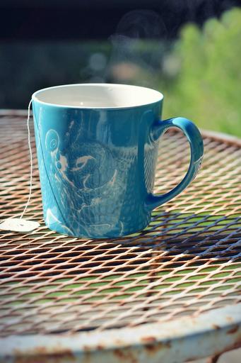 Keywords: tea morning cup drink breakfast lifestyle hot coffee cup relax table rustic break outside nature beverage vintage mug