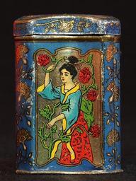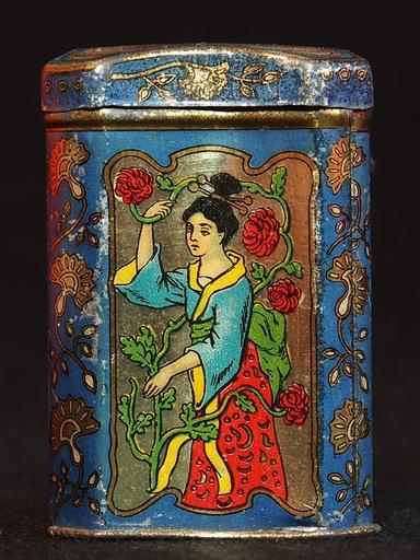 Keywords: Tea sample tin with four Geishas, photo5.JPG Very old product that is not produced and not sold any more Note that some tins may look the same but when looked for carefully there are some slight differences Photographed at a collector of Droste memorabilia and old tin cans For more info see http //www tincollectors nl/ tincollectors nl or email info tincollectors nl own 2014-02-08 11 40 40 Alf van Beem CC-Zero Trademarked Tea tins |