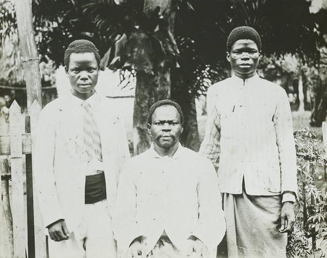 Keywords: Teachers, Congo, ca. 1900-1915 (IMP-CSCNWW33-OS10-49).jpg Belgian Congo present day Democratic Republic of the Congo An older man wearing a jacket with a round collar sits at the centre of the image Two younger men stand next to him one at each side One man wears a round high collared jacket with a wrap around his waist and the other younger gentleman wears a suit and tie with a cumberbund around the waist This slide comes from a collection generated by missionaries working for the Congo Balolo Mission a mission begun in 1889 under the supervision of the East London Training Institute for Home and Foreign Missions that developed into the interdenominational evangelical mission Regions Beyond Missionary Union after 1900 Photographer Unknown Filename IMP-CSCNWW33-OS10-49 tif Coverage date 1900/1915 Subject unesco Teachers; Teaching profession Part of collection International Mission Photography Archive ca 1860-ca 1960 Part of subcollection Photographs from the Centre for the Study of World Christianity University of Edinburgh U K ca 1900-ca 1940s Subject corporate name Congo Balolo Mission Repository name Centre for the Study of World Christianity Archival file Volume2/IMP-CSCNWW33-OS10-49 tif Repository address The University of Edinburgh School of Divinity New College Mound Place Edinburgh EH1 2LX United Kingdom Geographic subject country Congo Format aacr2 lantern slides 8 2 x 8 2cm Geographic subject continent Africa Rights Contact the repository for details Part of series Regions Beyond Missionary Union Congo Lantern Slides CSCNWW33/OS10 Repository email divinity-CSWC ed ac uk Date created 1900/1915 Publisher of the digital version University of Southern California Libraries Subject aat genre group portraits Format aat lantern slides; photographs Access conditions http //www ed ac uk/schools-departments/divinity/research/centres/world-christianity/collections-resources Geographic subject educational facilities File CSCNWW33/OS10/49 Subject lcsh Christian teachers 1900/1915 date created author http //digitallibrary usc edu/cdm/ref/collection/p15799coll123/id/78062 PD-old-70-1923 Men of Africa 1910s People of the Democratic Republic of the Congo 1910s Education in the Democratic Republic of the Congo Congo-Balolo Mission 20th-century black and white portrait photographs of men at three-quarter length Magic lantern images Images from USC Digital Library uploaded by Fæ International Mission Photography Archive ca 1860-ca 1960 |