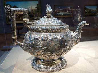 Keywords: Teapot by Samuel Kirk and Sons, Baltimore, 1846, silver - De Young Museum - DSC01281.JPG en Exhibit in the De Young Museum San Francisco California USA This artwork is in the public domain because the artist died more than 70 years ago Photography was permitted in the museum without restriction 2013-11-05 17 25 03 own Daderot other versions cc-zero American metalwork in the De Young Museum Uploaded with UploadWizard Samuel Kirk Sons |