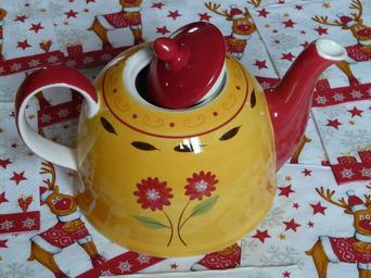 Keywords: teapot floral design flowers red lid tee porcelain