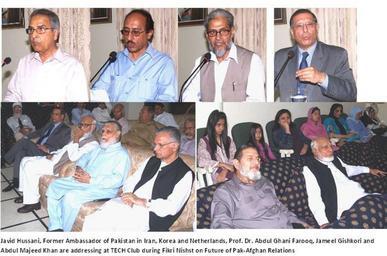 Keywords: TECH lub Lahore Fikri Nishst with Former Ambassador of Pakistan Javid Husain on Future of Pak-Afghan Relations.jpg en Non-Military solution is the practicable resolve of Afghan problem Javid Husain Successful achievement of objectives of negotiations for peaceful solution to the Afghanistan problem will be ensured if the negotiations are owned and lead by all the groups of Afghanistan These comments were expressed by Mr Javid Husain Former Ambassador of Pakistan during a seminar at TECH Club Lahore on the topic of Future of Pak-Afghan Relations Non military solution is the practicable solution of Afghan problem he added Mr Javid said Pakistan could only ensure national sovereignty by adopting the policy of self-reliance and strong internal governance He further expressed that Pakistan is effected by any development in Afghanistan due to the presence of Pushtoons on both sides of the border Drone Attacks have negatively effected the economy and society of Pakistan the Ambassador pinpointed Prof Dr Abdul Ghani Farooq also addressed on the occasion on the topic of Mukaafat-e-Amal Abdul Majeed Khan Convener TECH Club welcomed the guest speakers Famous poet Jameel Gishkori read his poem on the present circumstances of Pakistan In the end Former President of TECH Society Munawar Zaheer thanked the speakers and invitees for the participation in this thought provoking session Qayyum Nizami Political Leader Writer and Analyst was also present in the programme own Nadeemakram 2011-04-17 Cc-zero Photomontages of people |
