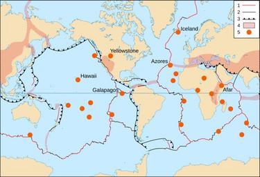 Keywords: Tectonic plates hotspots-en.svg Key 1 Divergent plate boundaries ; 2 Transform plate boundaries ; 3 Convergent plate boundaries ; 4 Plate boundary zones ; 5 Selected prominent hotspots World map in English of selected prominent geological hotspots Carte en anglais des principaux points chauds géologiques mondiaux Background map NGDC World Coast Line data<br/> Data http //pubs usgs gov/gip/dynamic/world_map html USGS 2006-10 upgraded 2015-09 Eric Gaba Sting - fr Sting Public domain Tectonic plates hotspots he jpg Tectonic plates hotspots-sv svg <gallery> File Tectonic_plates_hotspots-fr svg French File Prominent_hotspots png Original raster from USGS </gallery> Atelier graphique carte Geological maps of the world Global maps of tectonic plates Hotspot volcanoes Mantle plumes SVG geology PD-USGov-USGS fr French Wikipedia Sting |