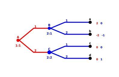 Keywords: Teil2.svg Spiel mit echtem Teilspiel und mehreren TSP Gleichgewichten Selbsterstellt mit http //econweb tamu edu/gambit/ Gambit 28 Juni '07 Ciciban 13 15 28 June 2007 UTC Check categories 2009 February 15 de wikipedia Teilspielperfektes_Gleichgewicht 1 Game theory |