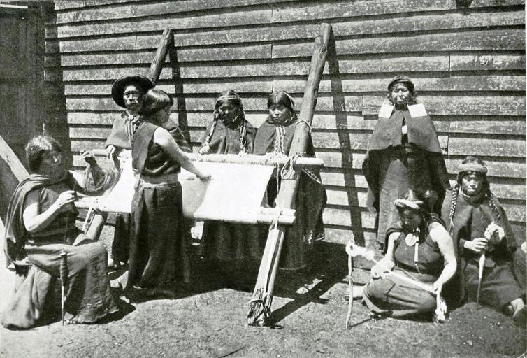 Keywords: Telar mapuche.jpg en araucanian women Chili spinning and weaving at their primitive form of loom https //archive org/stream/womenofallnation01joyc/womenofallnation01joyc page/389/mode/1up Women of all nations a record of their characteristics habits manners customs and influence edited by T Athol Joyce 1908 PD-old Mapuche people