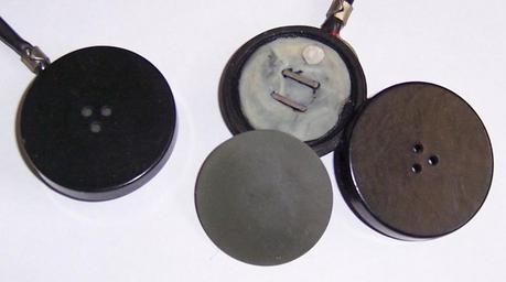 Keywords: Telephon TA.jpg ru Фотоснимок телефонного капсюля Earphone unit assembled left and disassembled right It consists of a permanent magnet top center with electromagnet windings around its poles not visible under the grease with its poles near a steel diaphragm bottom center The magnetic field of the magnet attracts the diaphragm When an audio signal current is applied to the electromagnet it creates a varying magnetic field that alternately strengthens and weakens the magnet's pull on the diaphragm So the diaphragm moves back and forth pushing on the air creating a sound wave own Се гин В А 8 02 2009 Telephone microphones |