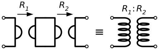 Keywords: Tellegen-gyrator-cascaded.svg handSVG ValidSVG en Two cascaded gyrators - equivalent to an ideal transformer of turns-ratio equal to the ratio of the gyration resistances own Catslash 2010-05-11 Gyrators Valid SVG