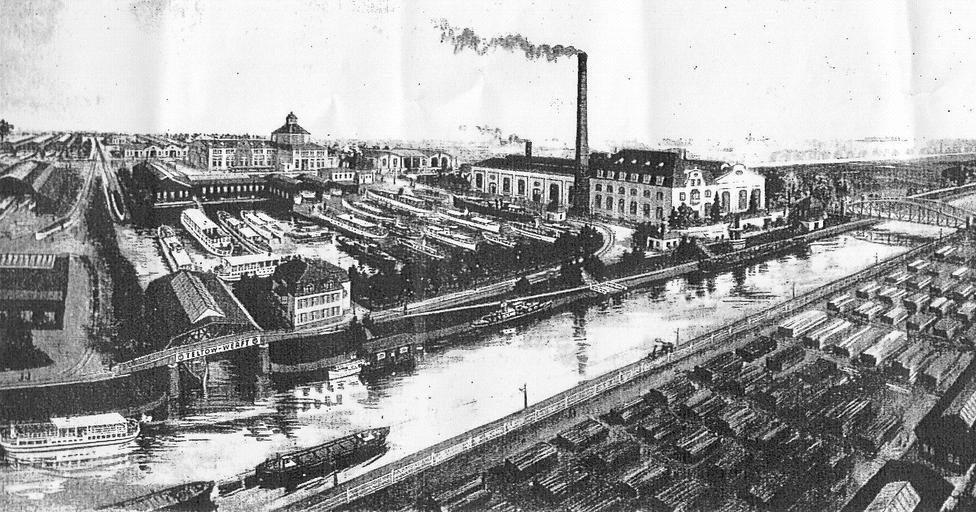 Keywords: Teltow-Werft 1 Teltowkanal.JPG Bildmontage der ehemaligen Teltow-Werft am Teltowkanal Die Werft ging aus dem 1906 beim Kanalbau angelegten Bauhof mit dem noch vorhandenen Bauhafen hervor in dem in der Treidelzeit des Kanals die Treidellokomotiven gewartet wurden Um die Lokomotiven von der Kanal-Südseite auf die Nordseite zu führen wurde die Teltow-Werft-Brücke im Bild rechts angelegt Diese Brücke am Kilometer 11 40 wurde auch von Fußgängern und Radfahrern genutzt In den letzten Tagen des Zweiten Weltkrieges wurde sie wie nahezu alle Kanalbrücken und die Betriebseinrichtungen der Treidelbahn zerstört In der Zeit der deutschen Teilung wurde wenige Meter weiter westlich der früheren Brücke eine Behelfsbrücke für den ehemaligen Kolonnenweg der Grenztruppen der DDR gebaut die Anfang der 1990er-Jahre abgerissen wurde Seit 2002 gibt es eine Interessenvertretung zum Wiederaufbau der Teltow-Werft-Brücke zur besseren Vernetzung des Umlandes Zudem bestand hier eine Treidelbrücke über der Einfahrt zum Bauhafen im Bild links Im Westen grenzt die Brandenburger Gemeinde Kleinmachnow an das Berliner Werftgelände Hier entstand 1997 das angrenzende Wohnstift Augustinum Kleinmachnow Die Werft mit dem Bauhafen und verschiedenen denkmalgeschützten Gebäuden unter anderem ein zweigeschossiges Direktorenhaus im Landhausstil und das östlich angrenzende ehemalige Kraftwerk Schönow gehören zu Berlin-Zehlendorf Former Teltow-Werft shipyard and maintenance yard for the tow-locomotives at the Teltowkanal canal In the west borders Kleinmachnow Brandenburg In 1997 there was built the senior residence Augustinum Kleinmachnow The shipyard with some listed buildings and the former port belong to Berlin-Zehlendorf Both bridges in the picture are former tow-bridges The right one the former Teltow-Werft-Bridge was also used by pedestrians unknown im Dezember 2009 überreicht von Herrn Seifert ehemaliger leitender Mitarbeiter der Teltow-Werft Author PD-old Teltow-Werft Bridges over the Teltowkanal in Berlin Iron truss railway bridges in Berlin Kraftwerk Schönow Iron truss beam railway bridges in Germany |