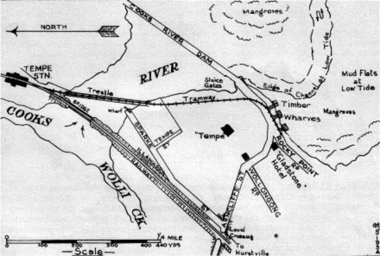 Keywords: Tempe.jpg en Map of temporary tramway at Tempe NSW Own Gifford Eardley 1954 PD-Australia Tempe New South Wales Wolli Creek New South Wales Old maps of Sydney 1954 Sydney in the 1950s