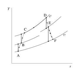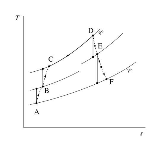 Keywords: Temperature-entropy chart of a twin-spool turboshaft.svg en Temperature-entropy chart of a gas turbomachine configured as a turboshaft with two spools The low-speed spool links compressor A-B with turbine E-F and the output shaft; the high-speed spool links compressor B-C with turbine D-E and has no net power output 2013 own Olivier Cleynen other versions cc-zero Gas turbine schemas and diagrams Temperature-entropy diagrams Uploaded with UploadWizard |