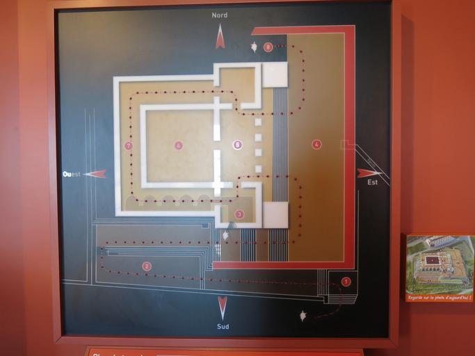 | Keywords: Temple de Mercure - floor plan.jpg en Plan of the Mercury temple Puy-de-Dôme France with the cursus of pilgrims 1 Entrance<br> 2 Theater for religious spectacles 300 seats <br> 3 Dedication hall where were exposed some precious objects<br> 4 Eastern terrace with view up to Clermont-Ferrand<br> 5 Pronaos vestibule of the temple <br> 6 Cella the shrine whose access was forbidden to pilgrims<br> 7 Gallery for riding of pilgrims<br> 8 Presumed exit<br> fr Plan du temple de Mercure Puy-de-Dôme avec le parcours du pélerin <br> 1 Entrée<br> 2 Théâtre pour des représentations religieuses 300 places <br> 3 Salle de la dédicace où étaient exposés des objets précieux<br> 4 Terrasse est avec vue jusqu'à Clermont-Ferrand<br> 5 Pronaos vestibule du temple <br> 6 Cella le saint-des-saints interdit d'accès aux pélerins<br> 7 Galerie pour la circulation des pélerins<br> 8 Sortie présumée<br> 2014-09-03 sf Tangopaso Espace du temple de Mercure Floor plans of ancient Roman temples |