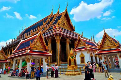| Keywords: temple wat church architecture culture people tourist buddha emerald sky thai cloud yellow blue gold perspective white ground thailand architectural colorful religious siam heritage buidling buddhism asia ancient bright sunny day daylight day |