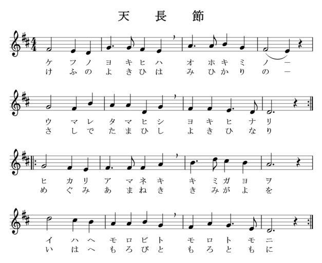 Keywords: Tenchosetsu (Official information of the Department of Education No. 3 of 1893).png en Sheet music of the Japanese ceremonial song Tenchōsetsu ja 式唱歌 天長 の楽 2012-04-14 Own work Transcribed from Kanpō Official Gazette of Japan Supplement to No 3037 12 August 1893 File User 庚寅五 <br />Music Oku Yoshiisa 奥好義 1858 1933 <br />Lyrics Kurokawa Mayori 黒 頼 1829 1906 Custom license marker 2012 04 13 PD-Japan Sheet music from Japan Songs of Japan Shōka Music in 1893 Legal history of Japan Oku Yoshiisa Kurokawa Mayori Uploaded with UploadWizard The Emperor's Birthday of Japan |