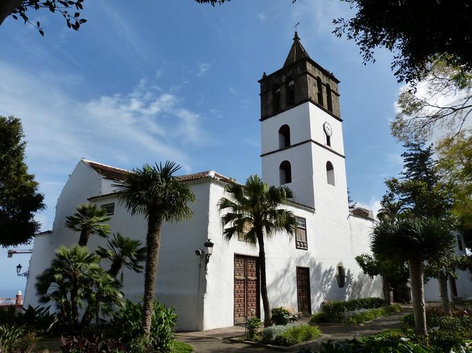 Keywords: tenerife canary islands landscape nature spain sea ocean church historically palm tower steeple places of interest building architecture