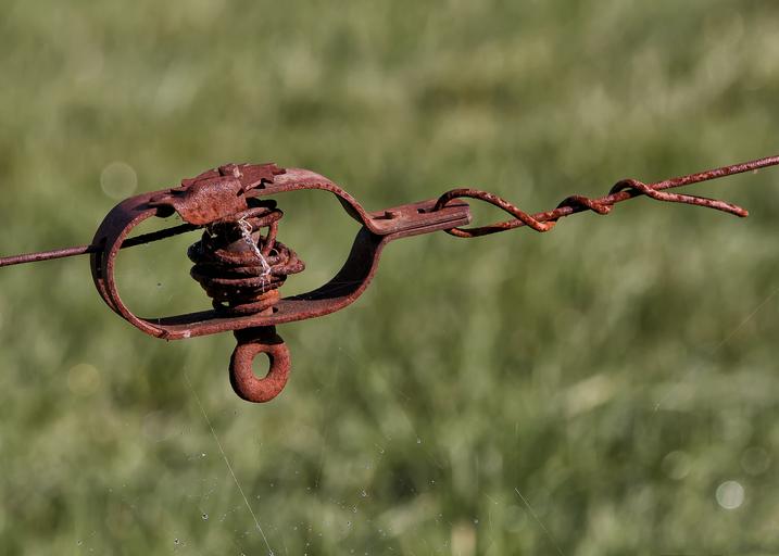 Keywords: tensioner fence wire pasture fence metal garden fence wire mesh fence barbed wire gate rusty stainless captivity demarcation limit barrier clamping rusted barbed wire fence