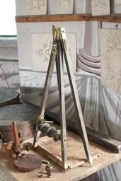 | Keywords: Teodolit av körsbärsträ - Skoklosters slott - 95172.tif LSH artwork sv Två rektangulära skivor placerade vinkelrätt mot varandr Den vertikala skivan har på undersidan en träpropp vilken sticks ned i ett runt hål i den horisontella skivan - den förstnämnda skivan kan således vridas runt Horisontella skivan 262 x 161 mm för mätning av en stjärnas azimut Skivan indelad i 180 grader med varannan grad målad mörk och sifferangivelser för var femte grad Vid 1 grad skrivet OR och vid 180 grader Oc med bläck Timindelning längs skivans kanter utanför halvcirkeln 2 x 24 tim Varannan timme mörkmålad och var tredje timme markerad med siffror 6 9 12 -reste osynligt T h om hålet för denvertikala skivankvadratisk urholkning 38 x 38 mm 6 mm djup med runt hål i mitten för kompass Gradindelningen vid 0 grader och 180 grader slutar 3 cm från skivans kant Ristade streck vid 0 grader 45 grader 90 grader och 180 grader Vertikala skivan 300 x 161mm för mätning av stjärnas höjd Torde ha haft 90 graders indelning på den övre delen av skivan ca 50 grader- 90 grader finns ej med eftersom den där iskarvade delenav skivan försvunnit Graderingen tycks även fortsätta 90 grader nedåt Varannan grad målad mörk var femte grad markerad med längre streck Radierade streck var 45 e grad På samma höjd som gradindelningens nollpunkt och 26 mm från kanter är ett runt hål 7 mm diam För diopterlinjal som saknas Markeringar liknande azinutskalans timindelning finns ca 7 cm från skivans underkant och nära dess högra ytterkant Upptill på skivans baksida urgröpning med en rund pinne med hjärtformat huvud och en fyrsidig pinne instruckna från sidan Smalt hål tvärs igenom båda pinnarna troligen är de avsedda för upphägning av lodlina Lodet skall då passa in i välvd öppning nedtill på skivan Skivans nedre del 34 mm Laxad vid den övre den är 2 mm längre än den övre och har dessutom en 52 mm långt uuskjutande profilering för att nå till azimutskivans hörn Azimutskivan har haft fyra från hörnen snett utgående fötter med skruvhål för fastsättning i fast underlag Azimutskivans kortsidor ilaxade likså höjdmätningsskivans f d överdel original caption Teodlolit av körsbärsträ <br/> Nyckelord Vetenskapshistoria other date century 18 size mm 215 340 318 SKO place of origin original filename sm_dig5905 31253 inventory number SKO 10633 95172 CC-BY-SA Fredrik Andersson History of science Fredrik Andersson Media contributed by LSH 2014-11 |