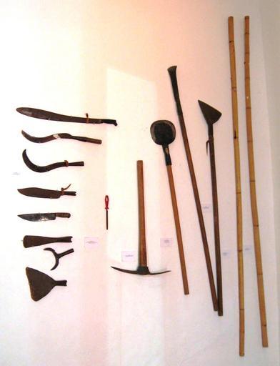 Keywords: TequilaToolsMuseum.JPG en Tools used in the growing harvesting and preparation of agave piñas or hearts for use in making tequila On display at the National Museum of Tequila in Tequila Jalisco Own Thelmadatter 2009-04-09 National Museum of Tequila