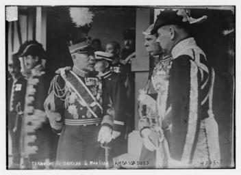Keywords: Terauchi & British & Russian Ambassadors (LOC) (21516622118).jpg Bain News Service publisher Terauchi British Russian Ambassadors between ca 1915 and ca 1920 1 negative glass ; 5 x 7 in or smaller Notes Title from data provided by the Bain News Service on the negative Photograph shows Count Terauchi Masatake 1852-1919 who was a Gensui Marshal in the Imperial Japanese Army and served as Prime Minister 1916-1918 with ambassadors Source Flickr Commons project 2014 Forms part of George Grantham Bain Collection Library of Congress Format Glass negatives Rights Info No known restrictions on publication Repository Library of Congress Prints and Photographs Division Washington D C 20540 USA http //hdl loc gov/loc pnp/pp print hdl loc gov/loc pnp/pp print General information about the Bain Collection is available at http //hdl loc gov/loc pnp/pp ggbain hdl loc gov/loc pnp/pp ggbain Higher resolution image is available Persistent URL http //hdl loc gov/loc pnp/ggbain 25120 hdl loc gov/loc pnp/ggbain 25120 Call Number LC-B2- 4303-7 https //www flickr com/photos/library_of_congress/21516622118/ Terauchi British Russian Ambassadors LOC LOC-image ggbain 25120 https //www flickr com/people/8623220 N02 The Library of Congress http //www loc gov/rr/print/195_copr html noknown The Library of Congress Flickr Commons PD-Bain The Library of Congress https //flickr com/photos/8623220 N02/21516622118 2016-09-08 07 14 53 pd Uncategorized 2016 October 28 |