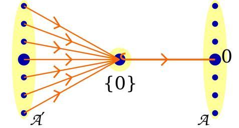 Keywords: Terminal and initial object.svg en Center the zero object <br/>Left half all elements of an object maps to zero the terminal morphism <br/>Right half 0 maps to 0 the initial monomorphism own Incnis Mrsi <span class signature-talk >talk</span> 2012-03-01 Created with Text Editor Category theory Algebraic diagrams |