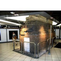 Keywords: TerminiWalldkcr(1).jpg Roman Wall Fragment under Termini Station Rome self-made Own Photograph taken August 2007 Ricoh Caplio5 2007-10-05 Notafly Interior of the new passenger building Roma Termini railway station Servian Walls