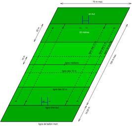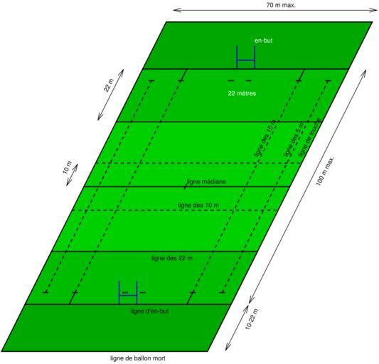 | Keywords: Terrain de rugby à XV.svg Terrain de rugby à XV avec légendes françaises d'après les spécifications « Règle 1 le terrain » de la Fédération française l'échelle est approximativement reproduite sauf pour les tirets de 1 m et 50 m qui sont nettement plus longs sur le dessin pour des raisons de lisibilité Rugby union pitch with French legends after specifications in Rule 1 the field by the French Federation approximate scaling is respected except for 50 cm and 1 m dashes that are much longer on the sketch Own 2007-09-25 Lachaume Rugby union field diagrams SVG sport field diagrams |