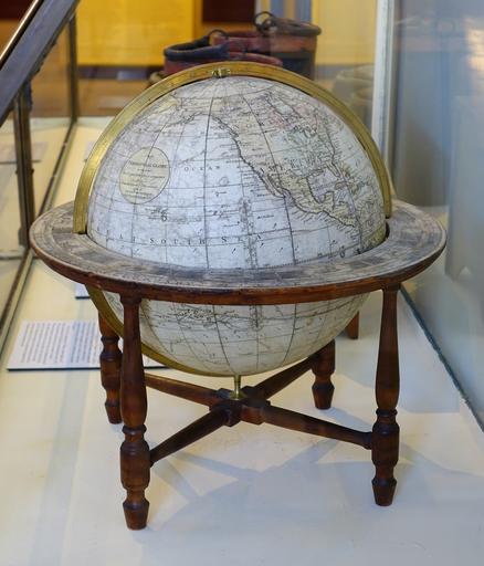 Keywords: Terrestrial globe, James A. Wilson (1763-1855), Bradford VT, 1810, hand-colored engraving on paper, wood, brass, plaster - Bennington Museum - Bennington, VT - DSC08839.JPG en Exhibit in the Bennington Museum - Bennington Vermont USA This work is in the public domain because the artist died more than 70 years ago Photography was permitted in the museum without restriction 2015-02-28 13 44 02 own Daderot other versions PD-old-70 cc-zero Collections of the Bennington Museum James Wilson globe maker |