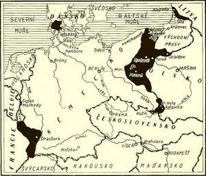 Keywords: Territorial losses of Germany.jpg s are in Czech Czech geographical magazine Zeměpisný měsíčník Širým světem ročník XIV 1937 author PD-Art Old maps of the German Empire Maps in Czech 1937 maps