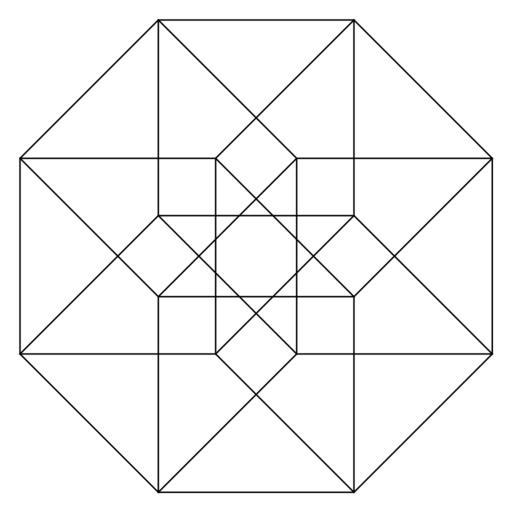 Keywords: Tesseract no vertices.svg Created with Sage en A tesseract graph with no vertices Created with the Sage code <source lang python >plot graphs CubeGraph 4 vertex_labels False vertex_size 0 </source> 2011-10-10 own Eviatar Bach cc-zero Tesseract Petrie polygon Images with Sage source code Files by User InverseHypercube |