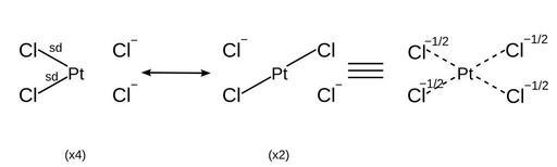Keywords: Tetra plat.svg en Resonance structures of Tetrachloroplatinate ion with orbitals labelled own Officer781 2013-10-04 Hypervalent compounds