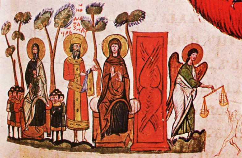 | Keywords: Tetraevangelia of Ivan Alexander 03.jpg en Ivan Alexander Jesus Christ and Virgin Mary - Miniature from Tetraevangelia of Ivan Alexander detail bg Иван Александъ в Рая между Х истос и Бого одица - детайл от миниатю а от Четве оевангелието на ца Иван Александъ Исто ия на Бълга ия Том ІІІ Вто а бълга ска дъ жава издателство на БА София 1982 author 1355-1356 Ivan Alexander of Bulgaria Tetraevangelia of Tsar Ivan Alexander 1355-1356 - BL Add MS 39627 PD-old-100 | ||||