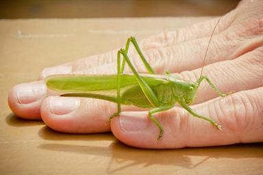 Keywords: tettigonia viridissima viridissima skip grasshopper green nature animal insect heupferdchen creature hand katydid long probe shrink sit