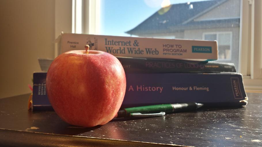 Keywords: textbook apple pencil study home snack education learn information workbook studying fruit book