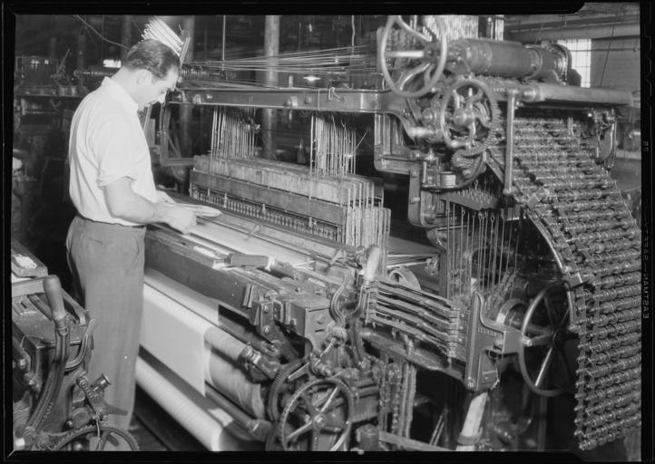 | Keywords: nara:arcid=518759 u.s. national archives usnationalarchives lewis hine lewishine the great depression thegreatdepression work portraits workportraits works progress administration worksprogressadministration paterson new jersey newjersey 1937 blackandwhite monochrome photo border black and white Original Caption: Paterson, New Jersey - Textiles. Wishnack Silk Company. Fancies being woven. Front view of a Crompton Knowles 4 x 4 72 loom with an intermediate head. The particular loom shown is using 16 shafts, but has a capacity of 25, June 1937 U.S. National Archives’ Local Identifier: 69-RP-702 Photographer: Hine, Lewis Subjects: The New Deal Tennessee Valley Authority Works Progress Administration Work Portraits The Great Depression Persistent URL: research.archives.gov/description/518759 Repository: Still Picture Records Section, Special Media Archives Services Division (NWCS-S), National Archives at College Park, 8601 Adelphi Road, College Park, MD, 20740-6001. For information about ordering reproductions of photographs held by the Still Picture Unit, visit: www.archives.gov/research/order/still-pictures.html Reproductions may be ordered via an independent vendor. NARA maintains a list of vendors at www.archives.gov/research/order/vendors-photos-maps-dc.html Access Restrictions: Unrestricted Use Restrictions: Unrestricted Original Caption: Paterson, New Jersey - Textiles. Wishnack Silk Company. Fancies being woven. Front view of a Crompton Knowles 4 x 4 72 loom with an intermediate head. The particular loom shown is using 16 shafts, but has a capacity of 25, June 1937 U.S. National Archives’ Local Identifier: 69-RP-702 Photographer: Hine, Lewis Subjects: The New Deal Tennessee Valley Authority Works Progress Administration Work Portraits The Great Depression Persistent URL: research.archives.gov/description/518759 Repository: Still Picture Records Section, Special Media Archives Services Division (NWCS-S), National Archives at College Park, 8601 Adelphi Road, College Park, MD, 20740-6001. For information about ordering reproductions of photographs held by the Still Picture Unit, visit: www.archives.gov/research/order/still-pictures.html Reproductions may be ordered via an independent vendor. NARA maintains a list of vendors at www.archives.gov/research/order/vendors-photos-maps-dc.html Access Restrictions: Unrestricted Use Restrictions: Unrestricted |