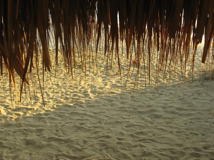 Keywords: texture straw hut beach sea sun sand sunset edge of the sea landscape shore costa