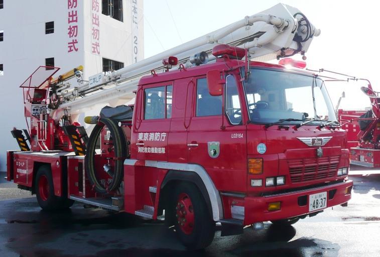 Keywords: TFD-LP.jpg 屈折放水塔車 京消防出 式にて撮影 own Photo by me 2008-01-06 Ypy31 Fire engines of Tokyo HINO Super Dolphin HINO fire engines Red fire engines