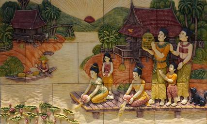 Keywords: thailand women river water female young people asian thai landscape outdoor lifestyle washing family sunset village life outdoor activities lifestyle people activity together