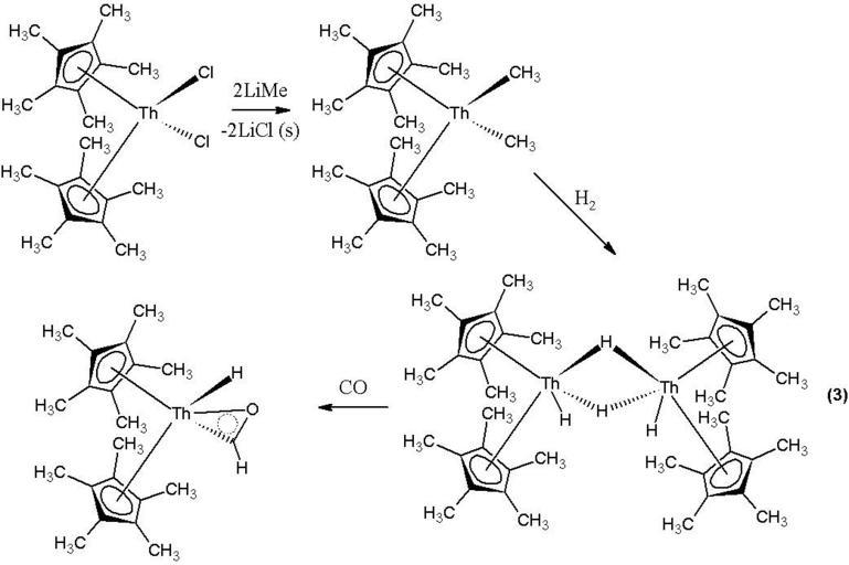 Keywords: ThCp2X2.jpg es Reacción de especies AnCp 2X2 El hidruro sufre una inserción de enlaces polares CO y se oxida; el CO se reduce a la forma η2-formilo Own LPWT09 Check categories 2009 June 13 es wikipedia Organolantánido 1 Organometallic chemistry |