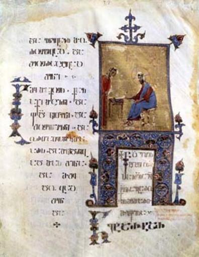 Keywords: The Alaverdi Four Gospels, A-484,1054 Christ Writing the Letter to Augarus.jpg en The Alaverdi Four Gospels A-484 1054 Christ Writing the Letter to Augarus ka ალავერდის თხთავი A-484 1054 წ ქრისტე წერს ეპისტ ლეს ავგარ ზს ხელ აწერთა ი სტიტუტი http //www photomuseum org ge/laboratory/images/03 jpg www photomuseum org ge anonymous 1054 Source http //www photomuseum org ge/laboratory/03_en htm www photomuseum org ge en <br>http //www photomuseum org ge/laboratory/03_ge htm www photomuseum org ge ge PD-old-100 Alaverdi Gospels Asomtavruli letter Nari Asomtavruli letter Khani
