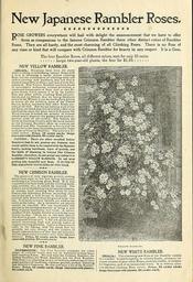 Keywords: The best homes in America plant my flowers, why not you? (16203472637).jpg New Japanese Rambler Roses <br> r 1 1 t <br> DOSE GROWERS everywhere will hail with delight the announcement that we have to offer <br> ¢ – A them as companions to the famous Crimson Rambler three other distinct colors of Rambler <br> Roses They are all hardy and the most charming of all Climbing Roses- There is no Rose of <br> any class or kind that will compare with Crimson Rambler for beauty in any respect It is a Gem <br> The four Rambler Koses all different colors sent for only 35 cents; <br> Large two-year-old plants the four for 1 60 <br> NEW YELLOW RAMBLER <br> any <br> years crossing or hybridizing; various Roses with <br> a view to obtaining- a hardy yellow climbing' <br> Rose but the combination of climbing habit ana <br> yellow coloring with hardiness was one that it <br> seemed impossible to obtain and was almost des- <br> paired of The Yellow Rambler has been found <br> to successfully withstand without protection a <br> continued temperature ot from zero to two de- <br> grees below which proves it to be far hardier <br> than any other yellow climbing Rose yet intro- <br> duced and we believe that by laying the plants <br> down in the Winter it can be successfully grown <br> in nearly all the northern parts of the United <br> Staes; in fact anywhere that other Roses suc- <br> ceed at all well Did we say nothing more about <br> the Rose we think that this would be sufficient to <br> establish its value for what lover of Roses in the <br> North has not bewailed the severity of climate <br> which nearly deprives his garden of the most at- <br> tractive color of all ” yellow The flowers are <br> borne in immense clusters after the same manner <br> as the Crimson Rambler often as many as one <br> hundred and fifty blossoms in a bunch and the <br> trusses have the same handsome pyramidal shape <br> as those of Crimson Rambler The color is a de- <br> cided yellow Price 15 cents each; large <br> two-year-old plants 50 cents each <br> CAUTION There are other so-called Yellow <br> Ramblers that do not possess any features that <br> would entitle them to be conpled with the Rambler <br> family lacking hardiness vigor of growth and <br> the habit of blooming in trnsses like Crimson <br> Rambler; therefore do not accept any unless it is <br> LAMBERT'S YELLOW RAMBLER Do not miss <br> getting this beautiful new Rose IT IS ONE OF <br> THE GREATEST NOVELTIES OF THE YEAR <br> »- - ¢ <br> NEW CRIMSON RAMBLER <br> The plant is of very vigorous growth making <br> shoots from eight to ten feet during the season <br> rendering it a charming pillar Rose It is also <br> magnificent in bush form and for covering build- <br> ings trellises etc it cannot be excelled The <br> flowers are produced in great pvramidal panicles <br> or trusses each carrying from thirty to forty <br> blooms the individual flowers measuring about <br> one to one and a half inches in diameter It is <br> covered with flowers from the ground to its very <br> top It is hardy in every latitude yet tried as far <br> north as the lakes As a decorative pot plant it <br> cannot be excelled We can recommend this <br> novelty in the strongest manner as being a new <br> Rose of great importance and value A corres- <br> pondent of the London Garden writes in the issue <br> of July 14 1894 '-With me at this date July 6 <br> this Rose is grand I have a dozen large plants <br> on prepared land or turf I did not prune much <br> merely shortening back and placing stakes to <br> support the long growths I gave a liberal mulch <br> early in the Spring with the result that the <br> growths are very strong and the clusters of <br> bright crimson flowers at this date are beautiful <br> On one shoot alone I counted over three hundred <br> blooms ' 1 Price 10 cents each; large two- <br> year-old plants 50 cents each <br> ¢ ¢ » <br> NEW PINK RAMBLER <br> EUPHROSYNE The Pink Rambler completes the entire <br> range of cardinal colors that can be embraced in these beau- <br> tiful climbing Roses We now have the Crimson Rambler the <br> Yellow Rambler the White Rambler and the Pink Rambler <br> This Rose is as charming as any of its rivals embracing all their <br> good qualities of hardiness vigorous growth profuse blooming <br> and delightful fragrance Be sure and have a set of the Rambler <br> Roses Price 10 cents each; large two-year-old plant- <br> 50 cents each <br> YELLOW RAMBLER <br> NEW WHITE RAMBLER <br> THALIA This charming new Rose of the Rambler variety <br> is a wonder It climbs rapidly is entirely hardy produces im- <br> mense clusters of pure white Roses perfectly double of delight- <br> ful fragrance and of an immaculate white It is without ques- <br> tion the best climbing Rose extant Price 10 cents each <br> large two-year-old plants 50 cents each 41846972 130961 64578 Text http //www biodiversitylibrary org/page/41846972 1899 10 5962/bhl title 64578 Ella V Baines Firm ; Henry G Gilbert Nursery and Seed Trade Catalog Collection NameFound Euphrosyne NameConfirmed Euphrosyne EOLID 3128695 NameBankID 1559409 Biodiversity Heritage Library Miss Ella V Baines the Woman Florist Springfield Ohio The best homes in America plant my flowers why not you Garden Stories Bulbs Plants Catalogs Flowers Plants Ornamental Seed industry and trade Seeds Trade catalogs U S Department of Agriculture National Agricultural Library bhl page 41846972 dc identifier http //biodiversitylibrary org/page/41846972 bhlGardenStories BHLinbloom bulbs plants plants ornamental u s department of agriculture national agricultural library bhlgardenstories bhlinbloom Information field Flickr posted date ISOdate 2015-01-28 CC-BY-2 0 BioDivLibrary https //flickr com/photos/61021753 N02/16203472637 2015-08-25 03 50 29 cc-by-2 0 PD-old-70-1923 Photos uploaded from Flickr by Fæ using a script The best homes in America The best homes in America plant my flowers, why not you? (16203472637).