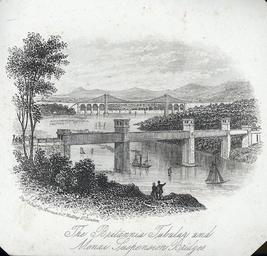 | Keywords: The Britannia tubular and Menai suspension bridges (1130052).jpg accession number J Newman Co credit line Abstract View of sailing ships and a steamship on the Menai Strait; both bridges span the strait and a train is crossing the Britannia Bridge Size mm 99 92 exhibition history Institution National Library of Wales Technique print engraving bw object history object type CC-zero place of creation place of discovery 1130052 The Britannia tubular and Menai suspension bridges 1130052 Uploaded with GWToolset The Britannia tubular and Menai suspension bridges 1130052 http //dams llgc org uk/iiif/test/2 0/image/1130052/full/1000 /0/default jpg Welsh Landscape Collection Images uploaded as part of NLW - WMUK collaboration Menai Strait in art Britannia Bridge in art Wales in the 1850s |