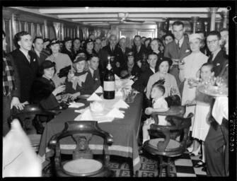 Keywords: samuel j hood collection samueljhoodcollection hood collection hoodcollection hood morinda burns philp burnsphilp mystery island mysteryisland australian film australianfilm talkie cast crew producer director actors actresses brian abbot brianabbot leslie hay simpson lesliehaysimpson desmond hay desmondhay george rikard bell georgerikardbell grace rikard bell gracerikardbell jean mort jeanmort jean laidley jeanlaidley lost at sea lostatsea motor skiff motorskiff motor launch motorlaunch mystery star mysterystar george doran georgedoran jonas alfred lipman jonasalfredlipman joe lipman joelipman george d malcolm georgedmalcolm birthday farewell party 1930s fashion 1930sfashion vintage vintage clothing vintageclothing vintage fashion vintagefashion 1930s women's fashion 1930swomensfashion 1930s women's clothing 1930swomensclothing people groupshot blackandwhite monochrome black and white This photograph depicts the cast and crew members of the Australian film Mystery Island (1937) during a farewell party on board SS MORINDA. The party was also a 9th birthday party for the joy (who stands to the right). The cast and crew were sailing Lord Howe Island to shoot the film. Shortly after shooting the film, George Rikard Bell (screen name Brian Abbot) and a fellow cast mate, Leslie Hay Simpson (screen name Desmond Hay), decided to forego the trip back to Sydney on board MORINDA and opted to sail on board the 16-foot motor skiff, MYSTERY STAR. The two were never seen again. Please see our blog for an extended version of the story. This photo is part of the Australian National Maritime Museum’s Samuel J. Hood Studio collection. Sam Hood (1872-1953) was a Sydney photographer with a passion for ships. His 60-year career spanned the romantic age of sail and two world wars. The photos in the collection were taken mainly in Sydney and Newcastle during the first half of the 20th century. The ANMM undertakes research and accepts public comments that enhance the information we hold about images in our collection. This record has been updated accordingly. Photographer: Samuel J. Hood Studio Collection Object no. 00022882 This photograph depicts the cast and crew members of the Australian film Mystery Island (1937) during a farewell party on board SS MORINDA. The party was also a 9th birthday party for the joy (who stands to the right). The cast and crew were sailing Lord Howe Island to shoot the film. Shortly after shooting the film, George Rikard Bell (screen name Brian Abbot) and a fellow cast mate, Leslie Hay Simpson (screen name Desmond Hay), decided to forego the trip back to Sydney on board MORINDA and opted to sail on board the 16-foot motor skiff, MYSTERY STAR. The two were never seen again. Please see our blog for an extended version of the story. This photo is part of the Australian National Maritime Museum’s Samuel J. Hood Studio collection. Sam Hood (1872-1953) was a Sydney photographer with a passion for ships. His 60-year career spanned the romantic age of sail and two world wars. The photos in the collection were taken mainly in Sydney and Newcastle during the first half of the 20th century. The ANMM undertakes research and accepts public comments that enhance the information we hold about images in our collection. This record has been updated accordingly. Photographer: Samuel J. Hood Studio Collection Object no. 00022882 |