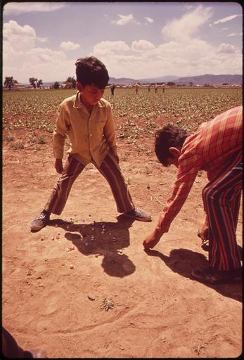 | Keywords: THE CHILDREN OF MIGRANT WORKERS PLAY MARBLES WHILE THEIR PARENTS WORK IN FIELDS - NARA - 543855.jpg Scope and content General notes 543855 Local identifier 412-DA-1362 Environmental Protection Agency 12/02/1970 - NARA-Author Gillette Bill 1932- Photographer 8464444 <br /> Fort Collins Larimer county Colorado United States North and Central America inhabited place 4201604 40 583 -105 08 <br /> Still Picture Records Section Special Media Archives Services Division NWCS-S National Archives at College Park 8601 Adelphi Road College Park MD 20740-6001 06/1972 Record group Record Group 412 Records of the Environmental Protection Agency 1944 - 2006 Record group ARC 708 DOCUMERICA The Environmental Protection Agency's Program to Photographically Document Subjects of Environmental Concern compiled 1972 - 1977 Series ARC 542493 File unit File unit ARC Variant control numbers Agency-Assigned Identifier 023/42/001362<br /> NAIL Control Number NWDNS-412-DA-1362 Other versions <gallery> File THE_CHILDREN_OF_MIGRANT_WORKERS_PLAY_MARBLES_WHILE_THEIR_PARENTS_WORK_IN_FIELDS_-_NARA_-_543855 tif tif File THE_CHILDREN_OF_MIGRANT_WORKERS_PLAY_MARBLES_WHILE_THEIR_PARENTS_WORK_IN_FIELDS_-_NARA_-_543855 jpg jpg </gallery> NARA-cooperation PD-USGov Marbles |