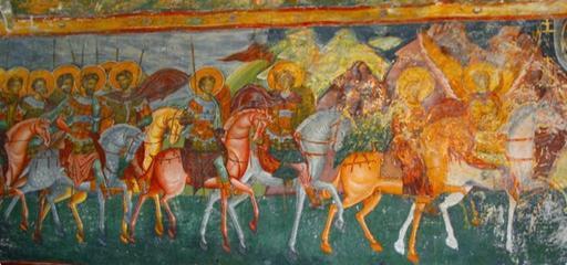 MAKE A MEME View Large Image The church of the Holy Cross of Pătrăuţi 01.jpg Импе ато Константин со святыми вио нами следуют за а хангелом  ихаилом Ф еска це кви святого К еста в ...