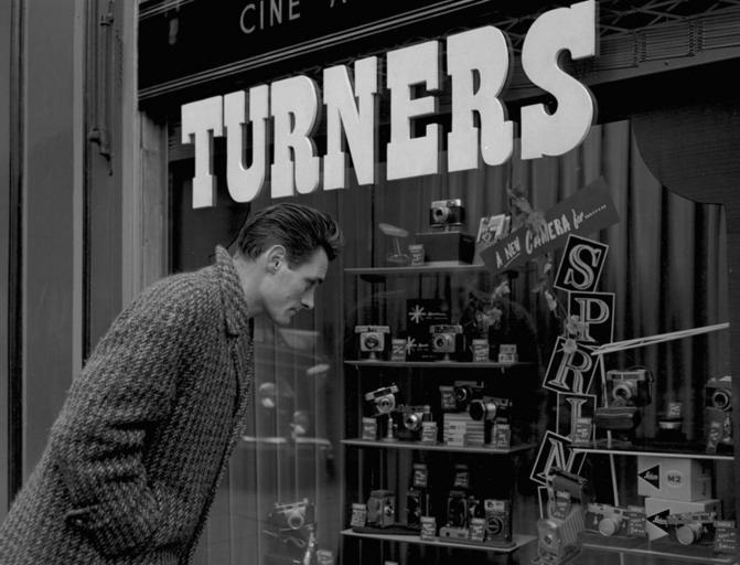 | Keywords: turners (photography) ltd turnersphotographyltd advertising marriage photography cameras 1960s humour black and white photograph blackandwhitephotograph glass window shop window shopwindow turners shop turnersshop husband man screen twentieth century twentiethcentury turners collection turnerscollection business premises promoting promote promotion sales camera march 1962 march1962 wondor inspiration happiness matrimonial harmony matrimonialharmony harmony reflection curtain shelf displays box cardboard coat pattern crease material clean shaven cleanshaven hair attentive impression a new camera for anewcamerafor presentation social abstract industry unusual timber paint blur signage sign package packaging pocket letter word visual language shine gloss attractive gimmick eyes ears nose mouth skin lips body arms legs blackandwhite monochrome black and white The husband finds the answer to his problems at a Turners shop in Newcastle. No more sitting in front of a screen for him (TWAM ref. DT.TUR/2/28465H). You can read a blog relating to these images here www.twmuseums.org.uk/engage/blog/turners-saved-my-marriage/. Tyne & Wear Archives is very fortunate to hold the photographic negatives of the firm Turners (Photography) Ltd. The collection contains many remarkable images commissioned by local firms during the second half of the Twentieth Century. The Turners collection also includes images taken by the firm to promote their own business and this set shows a short series of images taken in March 1962 to promote the sale of cameras in their shops. They tell the story of a bored husband, his mind numbed by television, and his worried wife. Looking for inspiration, the man passes by a Turners shop window and discovers the wonder of photography. At once his happiness returns and matrimonial harmony is restored. We’ve no record of the captions used by Turners to accompany these images so we’ve used a bit of artistic licence and created our own. Maybe you can suggest alternatives. (Copyright) We're happy for you to share these digital images within the spirit of The Commons. Please cite 'Tyne & Wear Archives & Museums' when reusing. Certain restrictions on high quality reproductions and commercial use of the original physical version apply though; if you're unsure please email archives@twmuseums.org.uk The husband finds the answer to his problems at a Turners shop in Newcastle. No more sitting in front of a screen for him (TWAM ref. DT.TUR/2/28465H). You can read a blog relating to these images here www.twmuseums.org.uk/engage/blog/turners-saved-my-marriage/. Tyne & Wear Archives is very fortunate to hold the photographic negatives of the firm Turners (Photography) Ltd. The collection contains many remarkable images commissioned by local firms during the second half of the Twentieth Century. The Turners collection also includes images taken by the firm to promote their own business and this set shows a short series of images taken in March 1962 to promote the sale of cameras in their shops. They tell the story of a bored husband, his mind numbed by television, and his worried wife. Looking for inspiration, the man passes by a Turners shop window and discovers the wonder of photography. At once his happiness returns and matrimonial harmony is restored. We’ve no record of the captions used by Turners to accompany these images so we’ve used a bit of artistic licence and created our own. Maybe you can suggest alternatives. (Copyright) We're happy for you to share these digital images within the spirit of The Commons. Please cite 'Tyne & Wear Archives & Museums' when reusing. Certain restrictions on high quality reproductions and commercial use of the original physical version apply though; if you're unsure please email archives@twmuseums.org.uk |