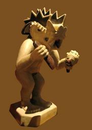 | Keywords: The Decapitator.jpg A reproduction of a Moche statue on display at the Army Museum in Stockholm The translation of the caption in the background is as follows THE DECAPITATOR A ferocious mythological being from the Moche culture in Peru c 500 BC In his right hand he is holding a tumi “ a ritual sacrificial knife At the top of Moche society reigned warrior-priests who presided over sacrificial ceremonies where prisoners of war were decapitated and cut up after which their blood was greedily drunk The Moche people possessed no writing system but their artwork is unparalleled in pre-Columbian America In the 8th century AD the culture disappeared without explanation Sculpture after a contemporary clay vessel from Peru 2007-07-04 Peter Isotalo The Decapitator Moche jpg Moche pottery Beheadings in art Collections of the Swedish Army Museum |