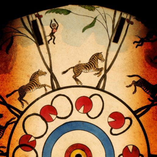 | Keywords: The Desert simulation (LOC cph.3g08083).gif ;TITLE The desert ;CALL NUMBER LOT 10527 no 11 P P ;REPRODUCTION NUMBER LC-USZC4-8083 color film copy transparency ;MEDIUM 1 print on disc lithograph hand-colored ; 24 cm ;CREATED/PUBLISHED Haymarket London Published by Thos McLean 1833 ;NOTES Optical illusion disc which is spun displaying the illusion of motion of a ball with a wedge-shaped piece missing passing through a hoop and of a monkey swinging on branches of a tree and a zebra jumping through an opening between two trees in a circle at the outer edge of the disc Published in McLean's optical illusions; or magic panorama London T McLean 1833 ;SEE ALSO 250px loc-image cph 3g08083 Phenakistoscope Trialsanderrors Animated GIF |