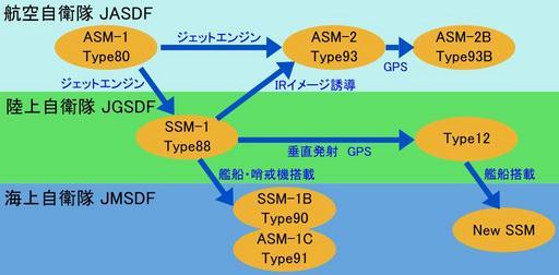 Keywords: The development of Japanese anti-ship missiles.svg ja 日 ・自衛隊における対艦誘導弾の発達・開発系 en The development of Japanese anti-ship missiles SDF ASM/SSM 2014-01-26 17 36 32 own Los688 Anti-ship missiles of Japan